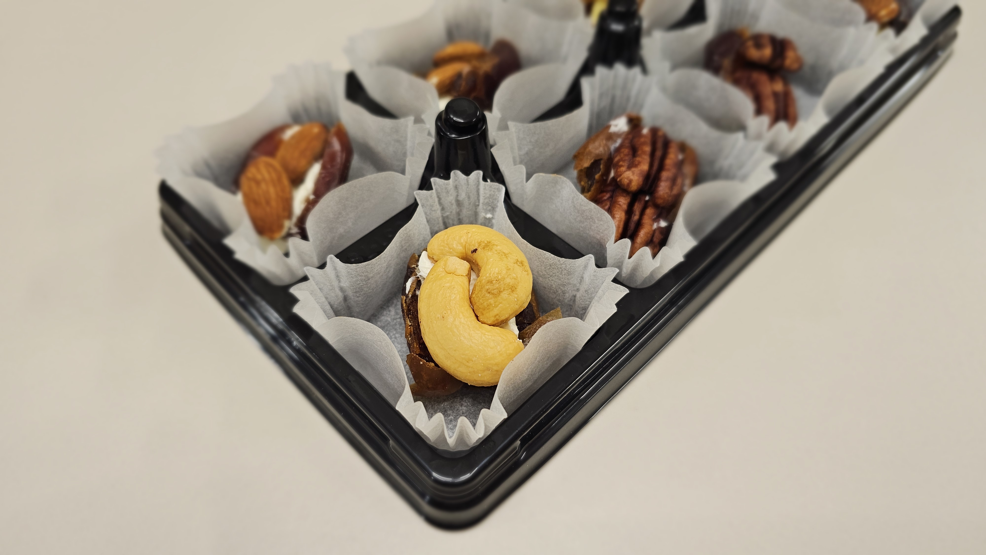 먼저 깨끗이 손을 씻고, 견과류를 한 번씩 볶아 고소한 향을 살렸어요. 대추야자를 살짝 벌려 크림치즈나 버터 한 조각을 넣고, 아몬드·피칸·캐슈넛·마카다미아 등을 취향껏 얹었지요. 여기에 코코넛 칩과 망고 슬라이스를 올리니 고소함과 달콤함이 어우러져 완벽한 균형이 되었어요.