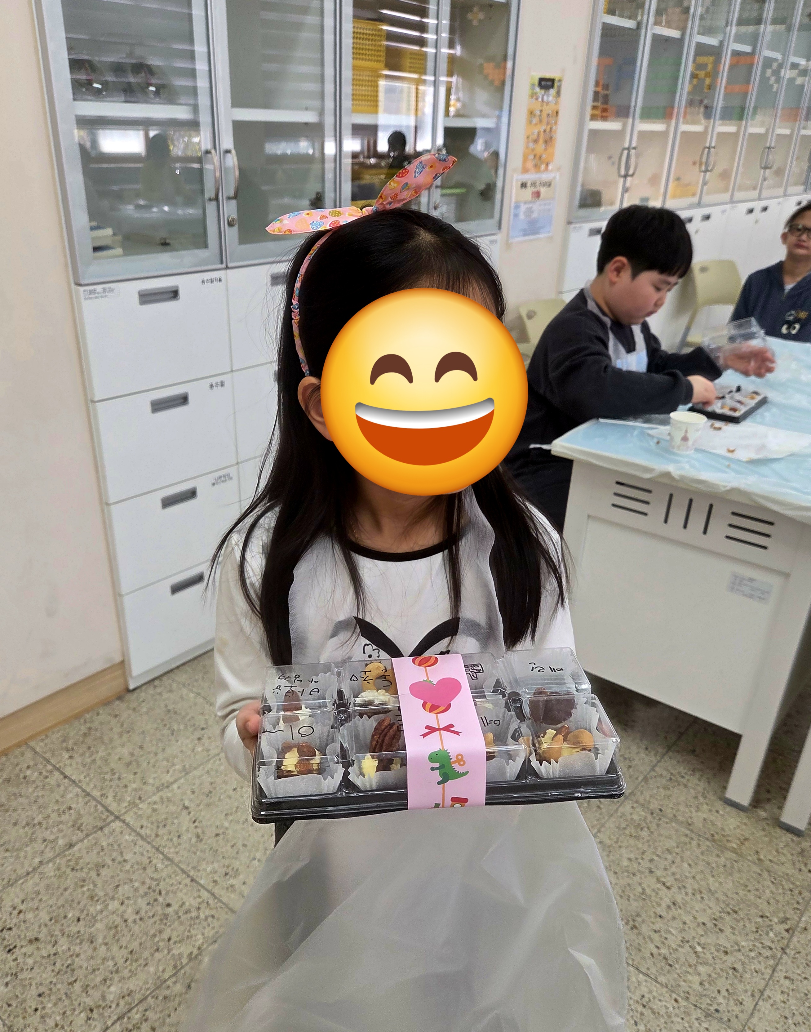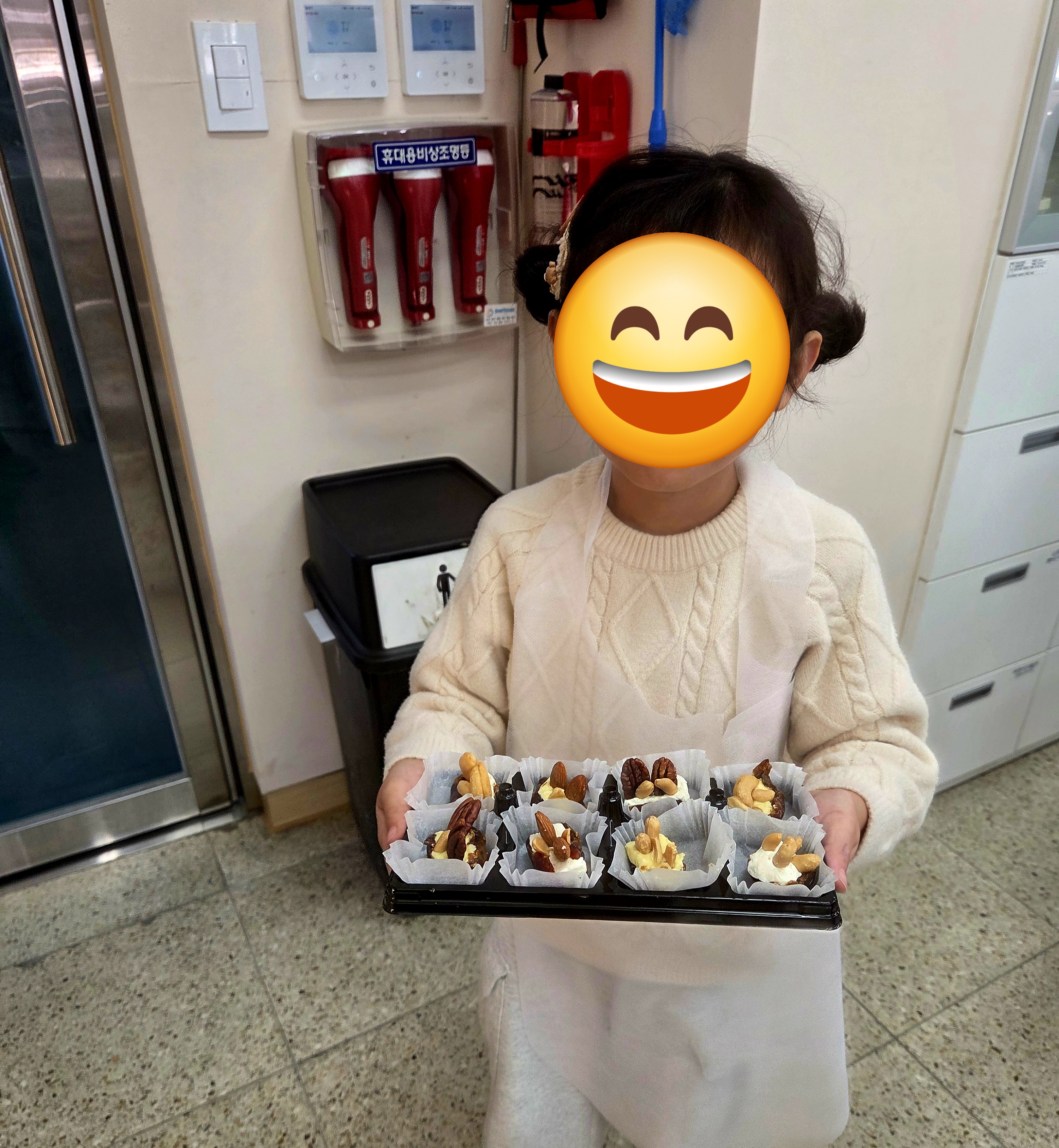 수업은 먼저 손 씻기 → 재료 확인 → 데이츠 손질 → 속재료 채우기 → 초코와 토핑으로 꾸미기 → 시식 및 정리 흐름으로 이어졌고, “이게 진짜 고급 간식 맞아요?” 하며 신기해하는 모습이 귀여웠어요.