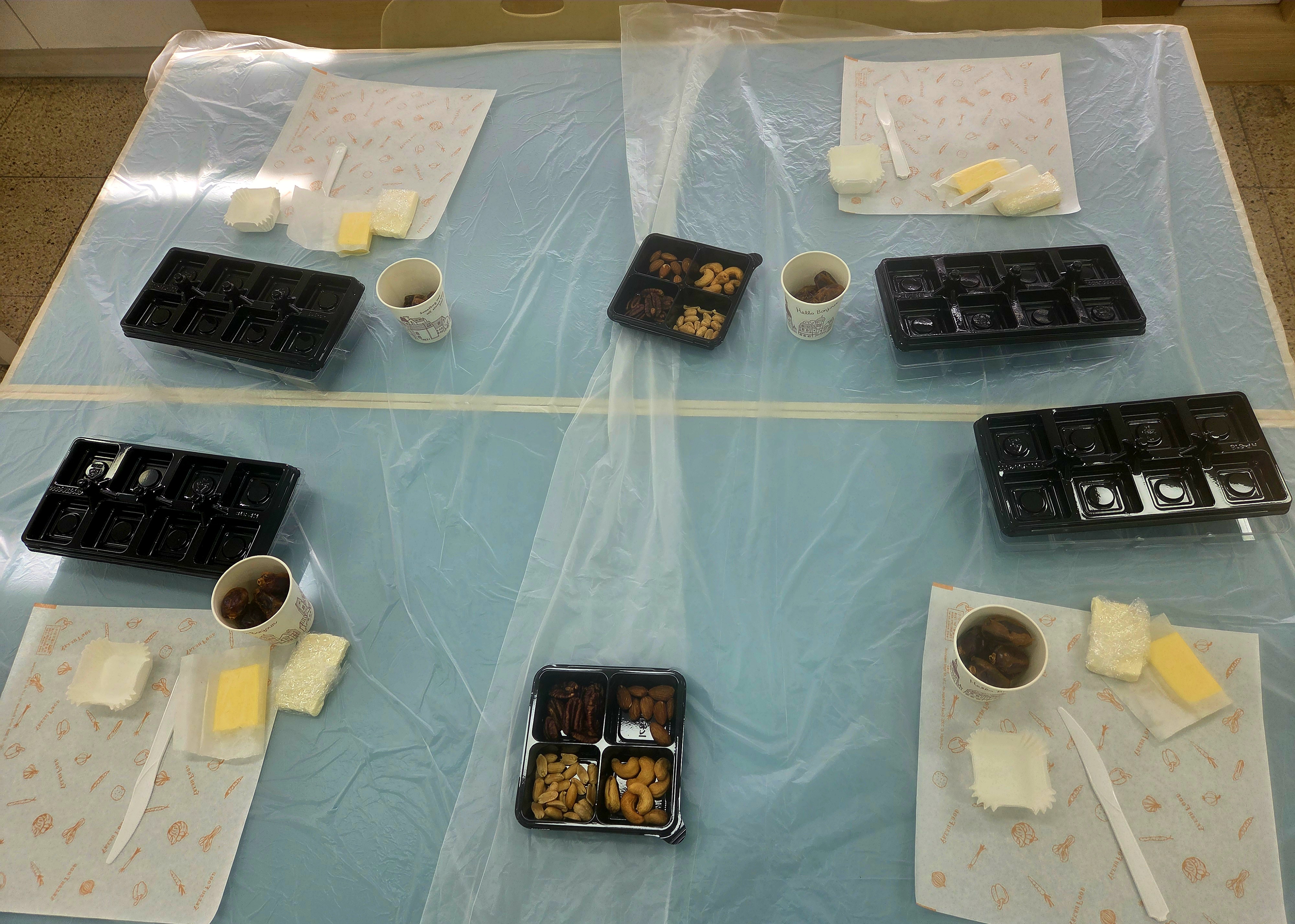 준비된 데이츠를 반으로 갈라 씨를 빼고, 안에 견과류를 꽉 채워서 만들어보는 활동이었는데 생각보다 간단하지만 모양 내기에는 집중력이 필요한 요리였어요.