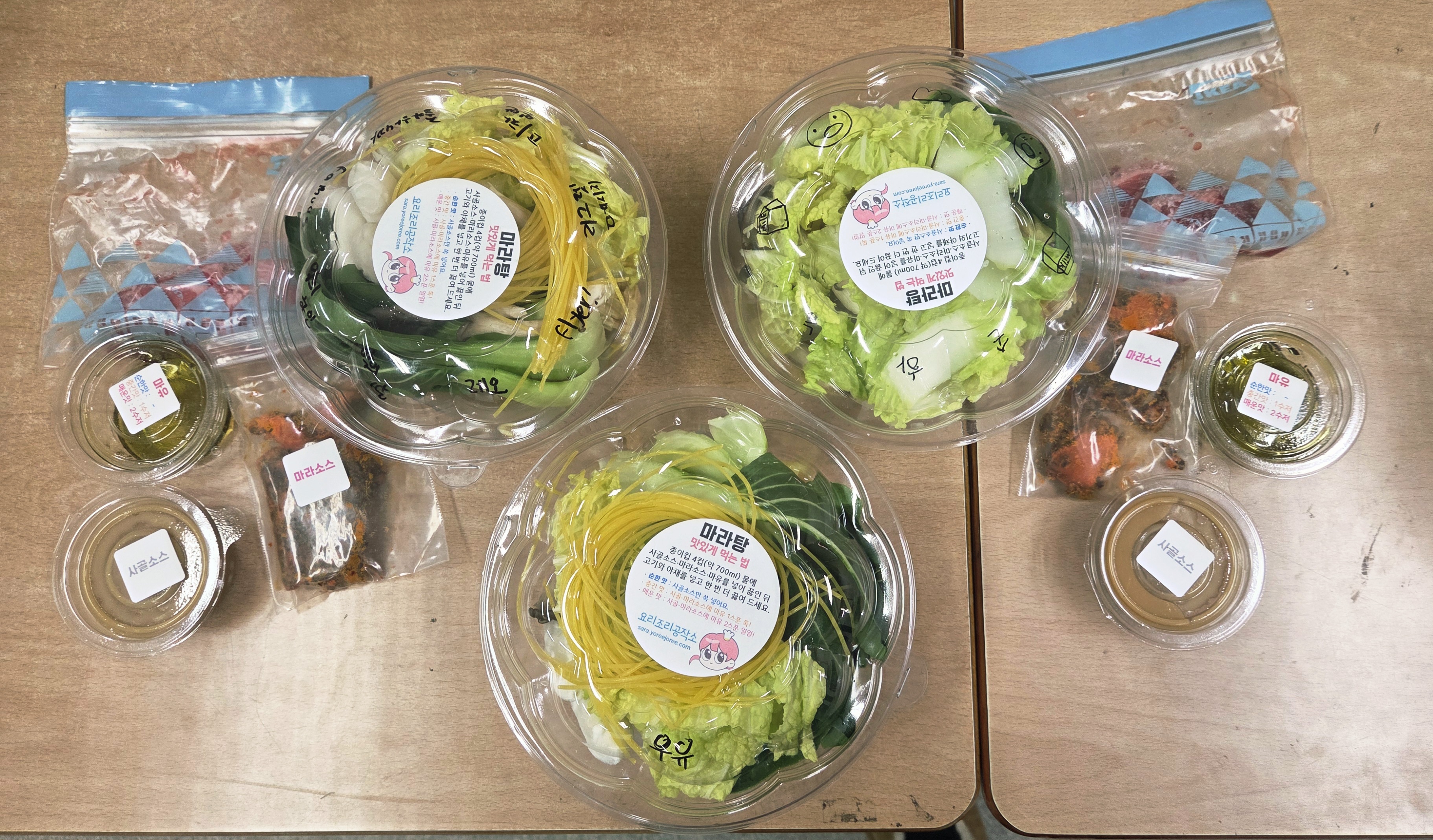요즘 아이들 사이에서 마라탕이 얼마나 인기인지 직접 느낄 수 있었던 시간이었어요. 호암초, 회천초, 일동초 친구들과 함께 마라탕 밀키트를 만들어봤는데, 재료를 꺼내자마자 “선생님, 이거 진짜 마라탕 돼요?” 하고 눈을 반짝이는 모습이 너무 귀여웠어요. 수업은 손 씻기부터 시작해서 재료 정리하고 속재료를 구성한 뒤 포장까지 자연스럽게 이어졌고, 아이들은 재료 하나씩 담을 때마다 자신만의 ‘완벽한 마라탕’을 만들고 싶어 하는 모습이 보였어요.