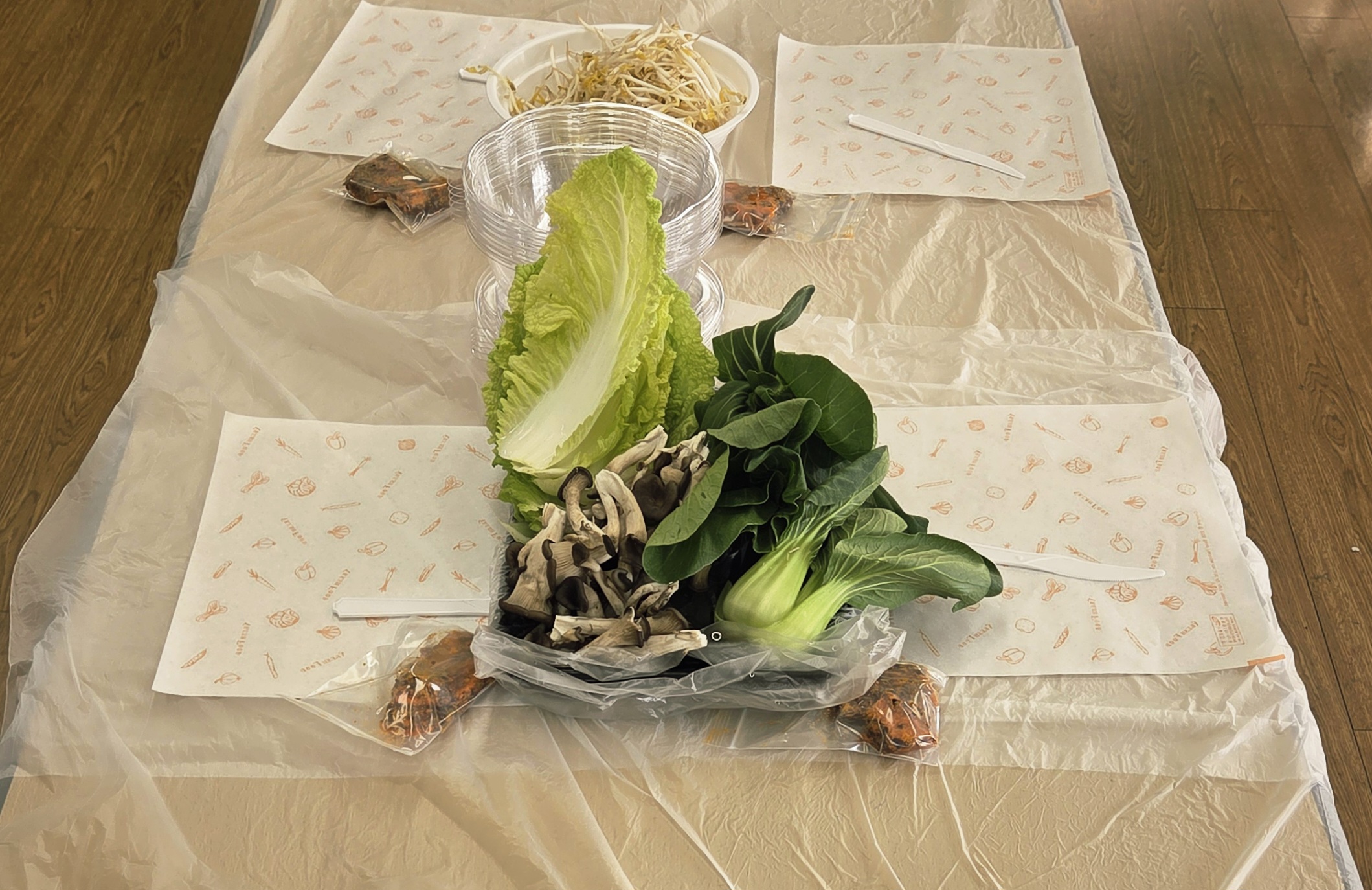 배추, 버섯, 햄, 당면, 어묵 등 준비된 재료를 차곡차곡 담으면서 “저는 안 매운 버전!”, “저는 마라 맛 필수죠!” 같은 말이 왔다 갔다 하면서 분위기가 점점 더 즐거워졌어요. 서로 비교해보면서 어떤 조합이 더 맛있을지 이야기하고, 고기 양을 넣을지 말지 고민하는 모습도 정말 귀여웠어요.