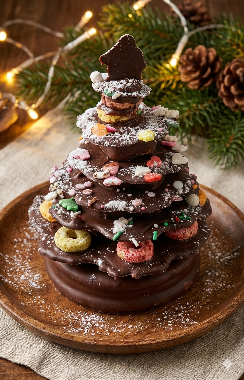 초코나무 만들기는 녹인 초콜릿을 판 모양으로 굳혀서 크기별로 하나씩 쌓아 올리며 나무처럼 완성하는 활동이에요.