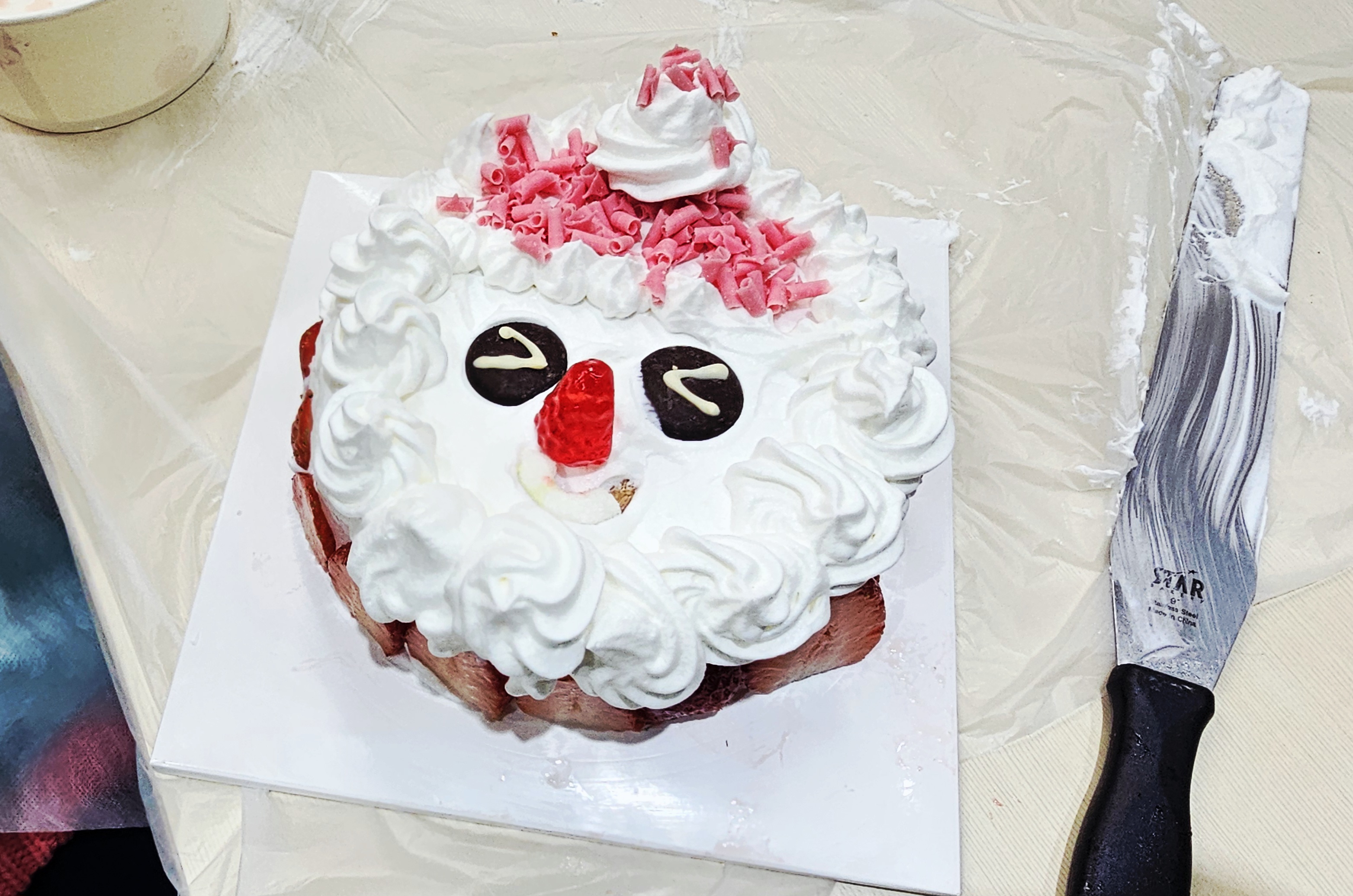 산타 얼굴을 표현하는 단계에서는 초콜릿으로 눈을 만들고, 딸기나 젤리로 코와 입을 꾸미며 각자만의 산타를 완성했답니다.