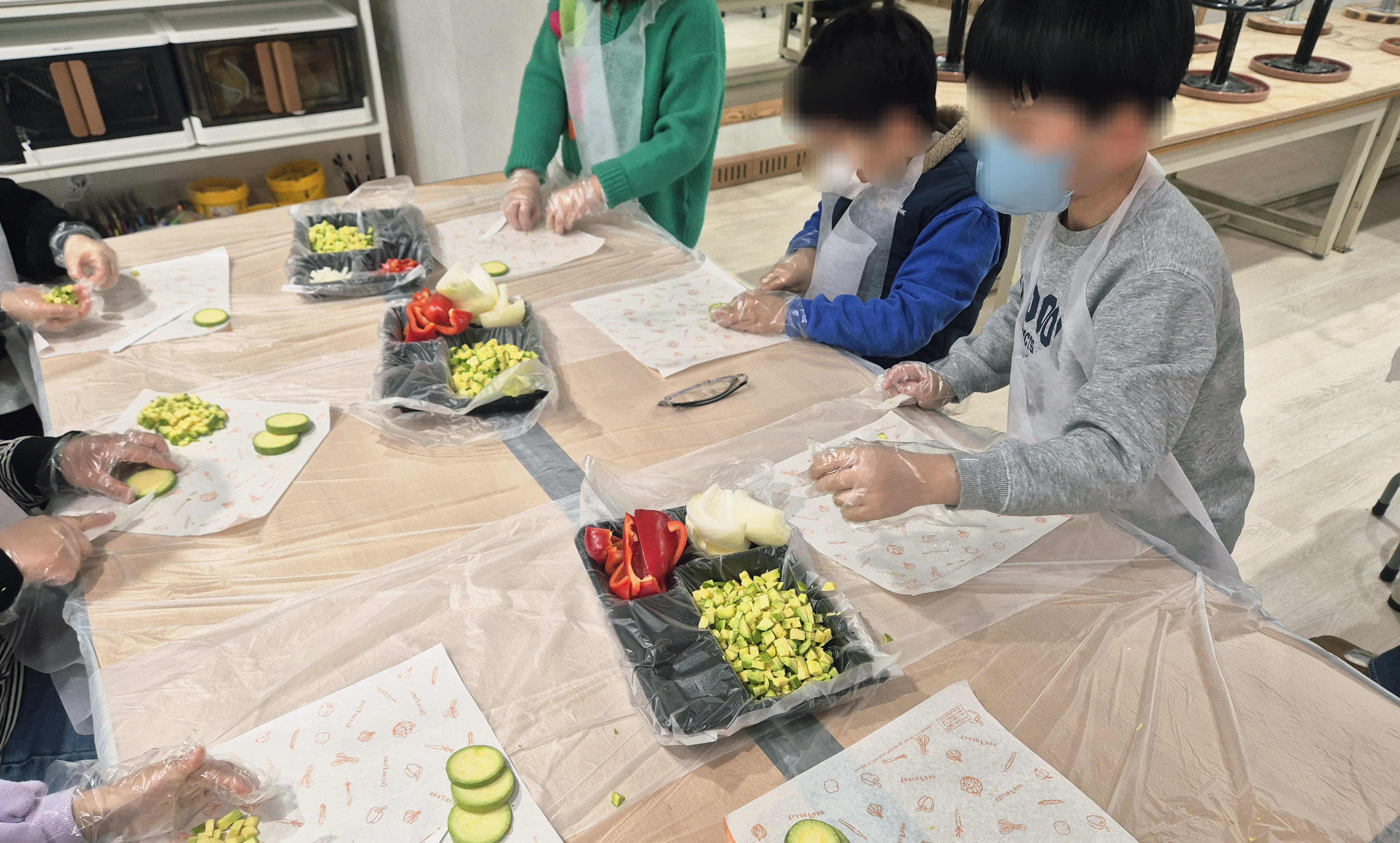 양파, 파프리카, 버섯 등 알록달록한 채소들을 정성껏 손질하는 시간을 가졌는데요. 아이들도 채소의 색감에 즐거워하며 집중하는 모습이 정말 인상적이었답니다.