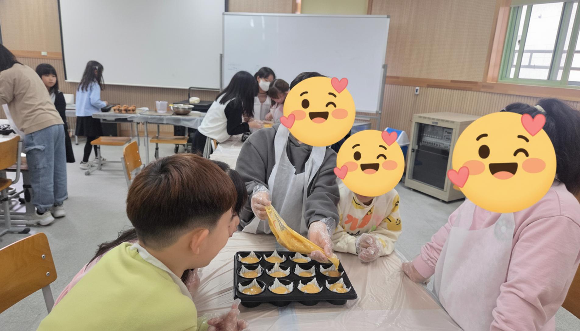 반죽을 다 채우고 나니 얼마나 뿌듯한지, 아이들 얼굴에 함박웃음이 피어났어요. 카메라를 향해 천진난만하게 브이를 그려 보이는 얼굴에선 '내가 해냈다!'는 자신감이 넘쳐흘렀죠. 요리 교실은 단순히 음식을 만드는 시간을 넘어, 아이들에게 즐거운 성취감을 선물하고 친구들과 협동하는 법을 배우는 소중한 추억의 공간이 된답니다.