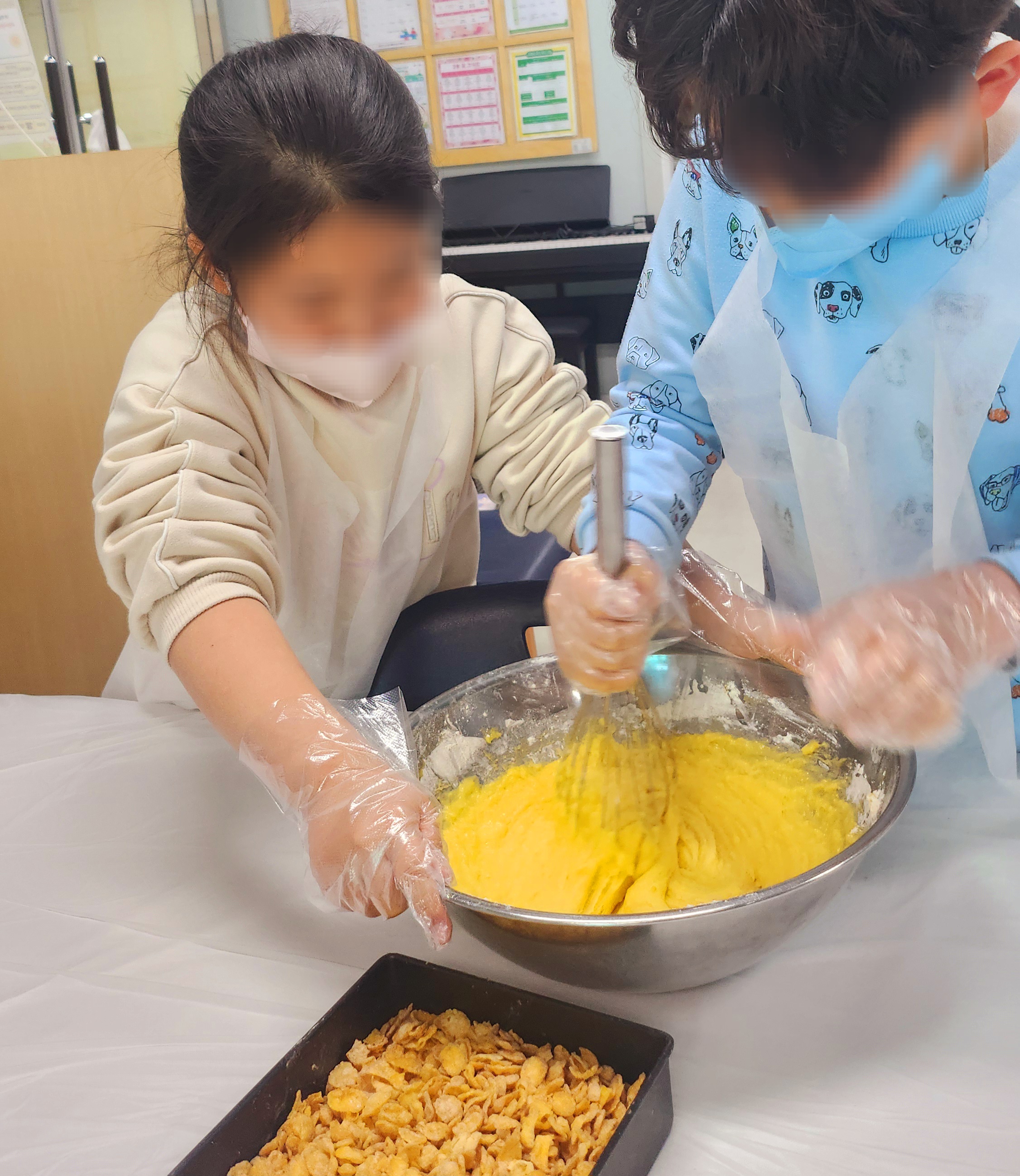 요즘 인기 있는 홈베이킹 트렌드를 반영해, 이번 강의에서는 아이들과 함께 직접 반죽을 섞고, 시리얼을 듬뿍 묻혀서 재미있게 만들어보았어요.