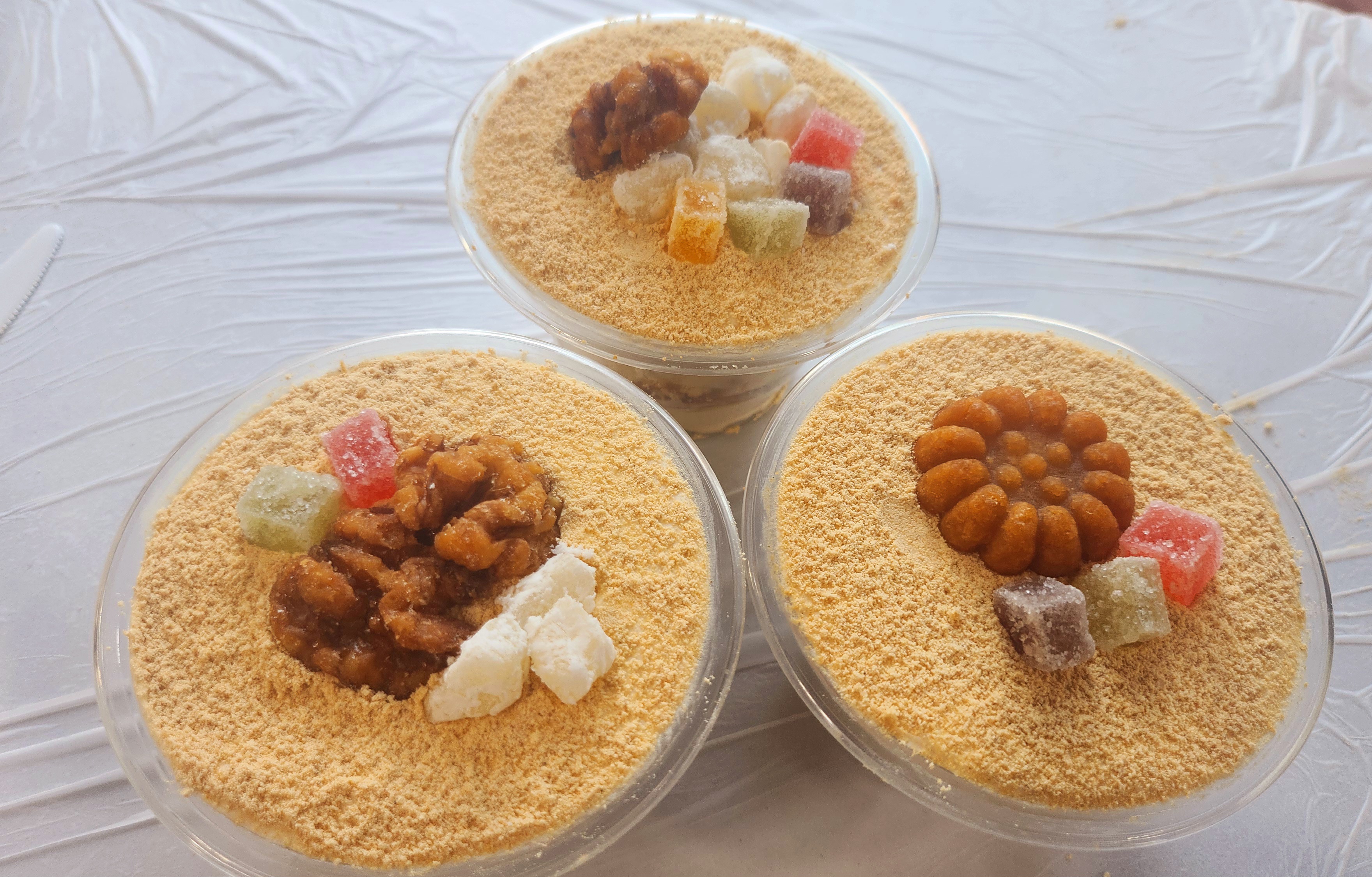 고소한 인절미와 달콤한 팥이 만나 컵케이크로 재탄생했어요! 인절미팥컵케이크는 촉촉한 제누와즈나 카스테라 위에 부드러운 생크림과 인절미 가루, 달콤한 팥, 그리고 쫀득한 떡과 미니 약과까지 더해진 한국적인 디저트예요.