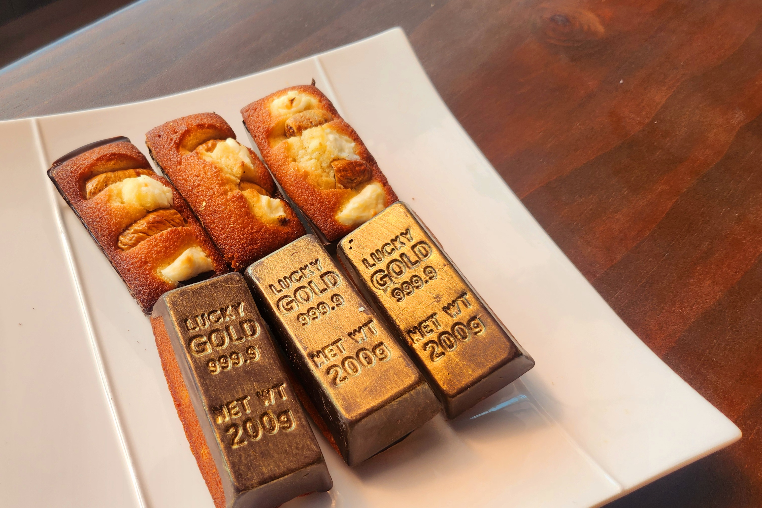 이번에는 특별히 황금 골드바 모양의 휘낭시에를 만들어봤어요. 반짝반짝 빛나는 골드 휘낭시에는 먹기도 아까울 정도죠? ^^