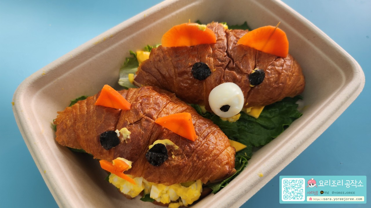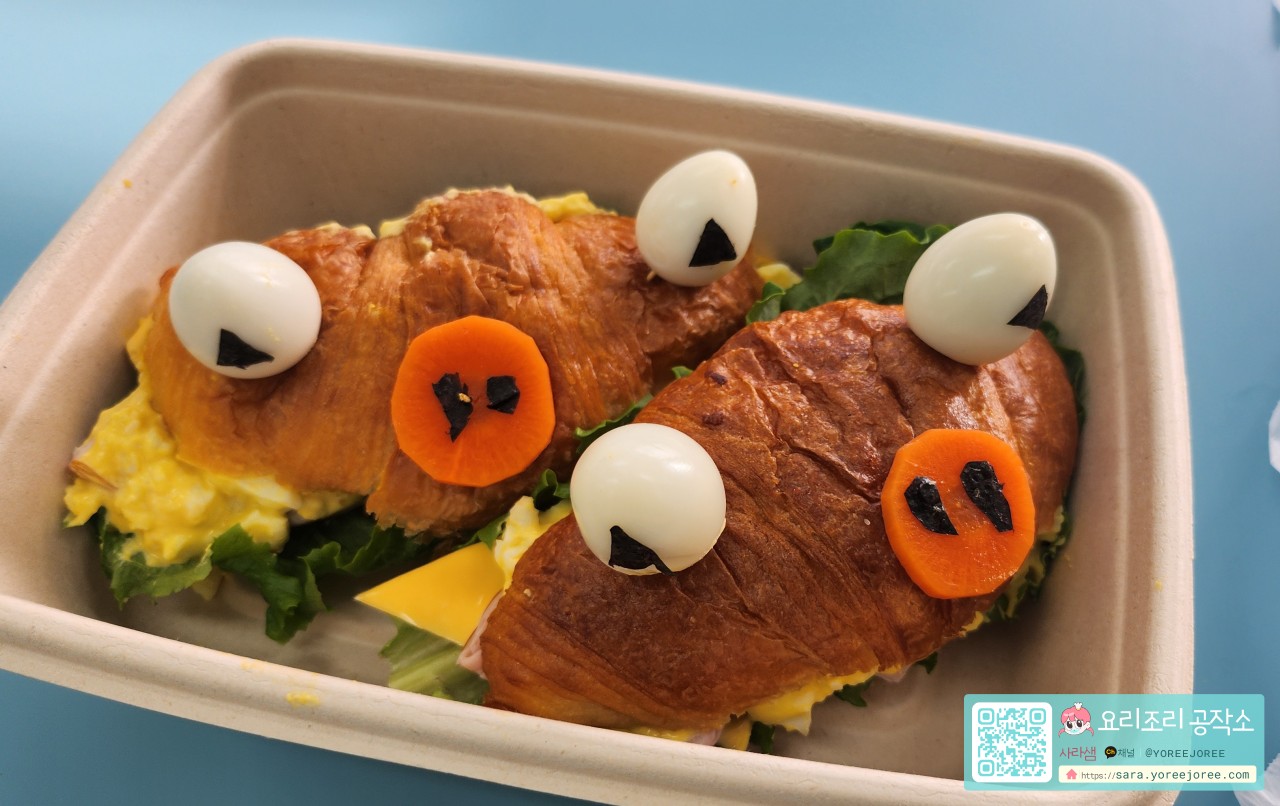 프랑스의 고급스러운 빵 '크로와상'이 바다 친구 꽃게로 변신했어요! 최근 아이들이 좋아하는 캐릭터 모양 요리가 SNS에서 인기를 끌고 있는데요, 우리 '요리조리공작소'에서도 귀여운 꽃게 모양의 크로와상 샌드위치를 아이들과 함께 만들어 보았어요. 크로와상 빵 사이에 신선한 상추, 계란 샐러드, 치즈를 넣고, 당근, 김, 메추리알로 꽃게의 눈과 집게를 귀엽게 표현했답니다. 사라샘과 함께하는 즐거운 아동요리 클래스에 놀러 오세요!
