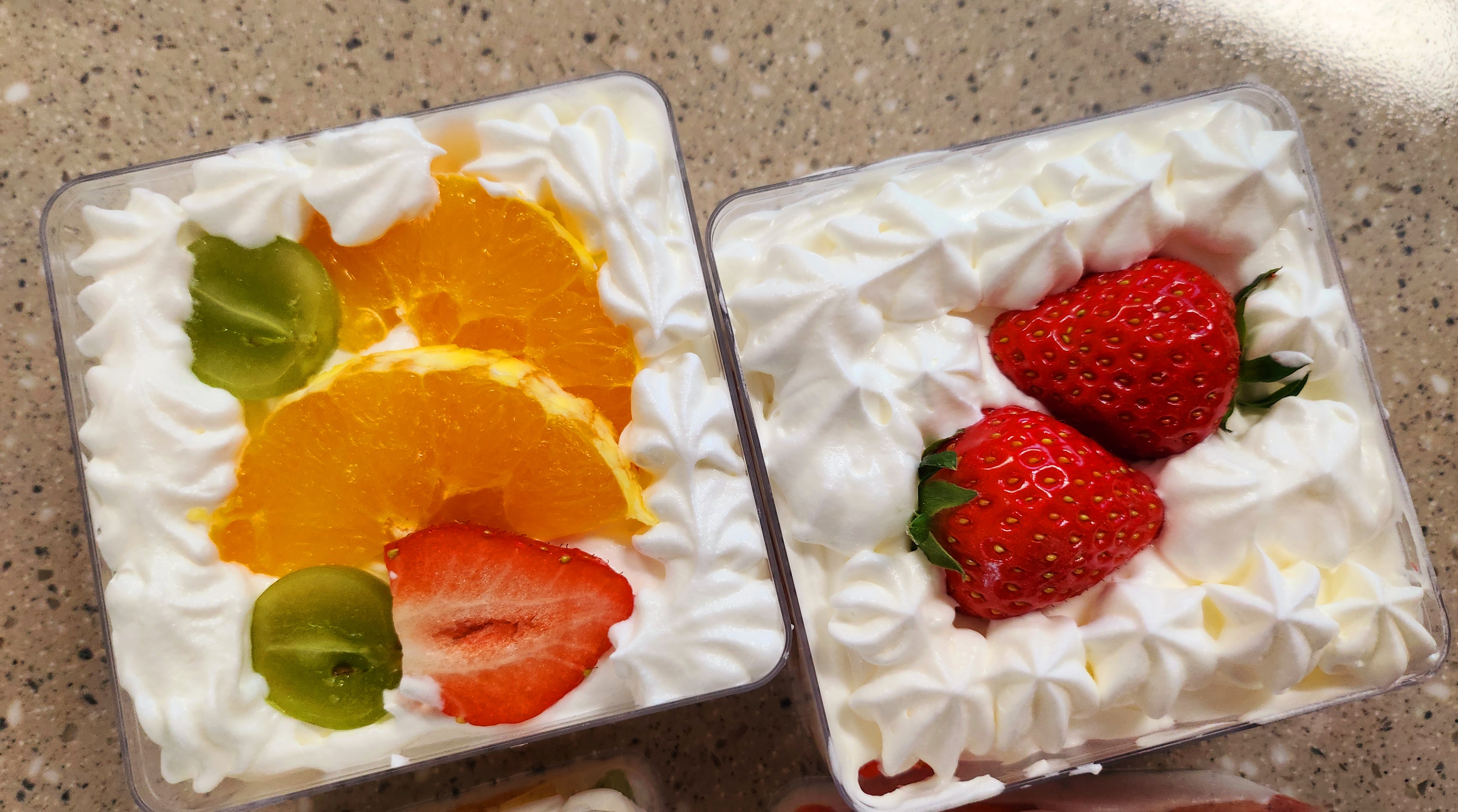 사각형 투명 케이스에 한가득 담긴 생크림과 과일의 조화는, 보는 순간 "와!" 소리가 절로 나오는 마법 같은 비주얼! 아이들도 쉽게 만들 수 있어서 초등학생 요리 수업으로 인기 만점이랍니다.