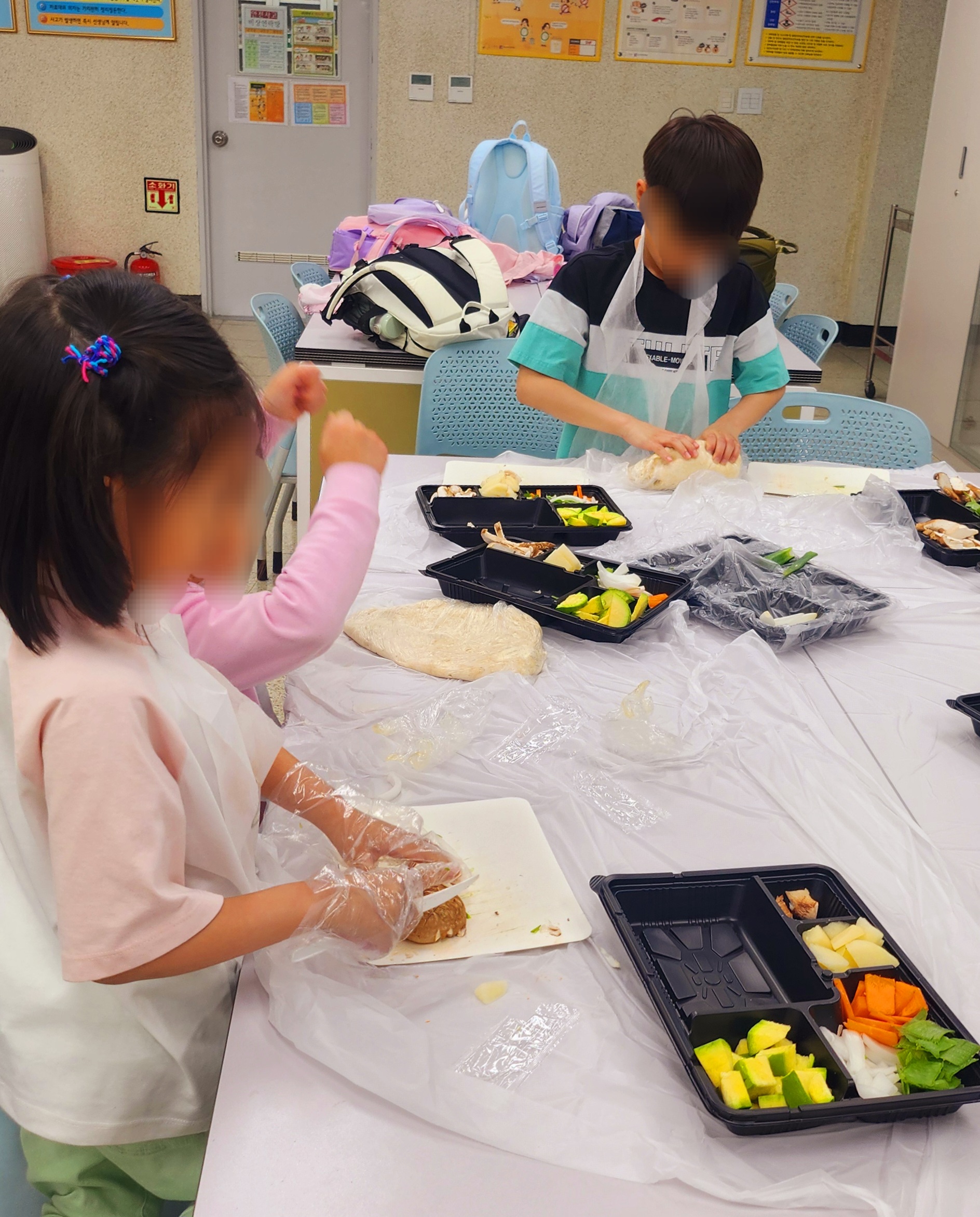 수업은 반죽 만들기 → 채소 손질 및 담기 → 키트 포장 순으로 진행되며, 완성된 수제비 키트는 집에서 부모님과 함께 끓여볼 수 있도록 구성되어 있답니다.