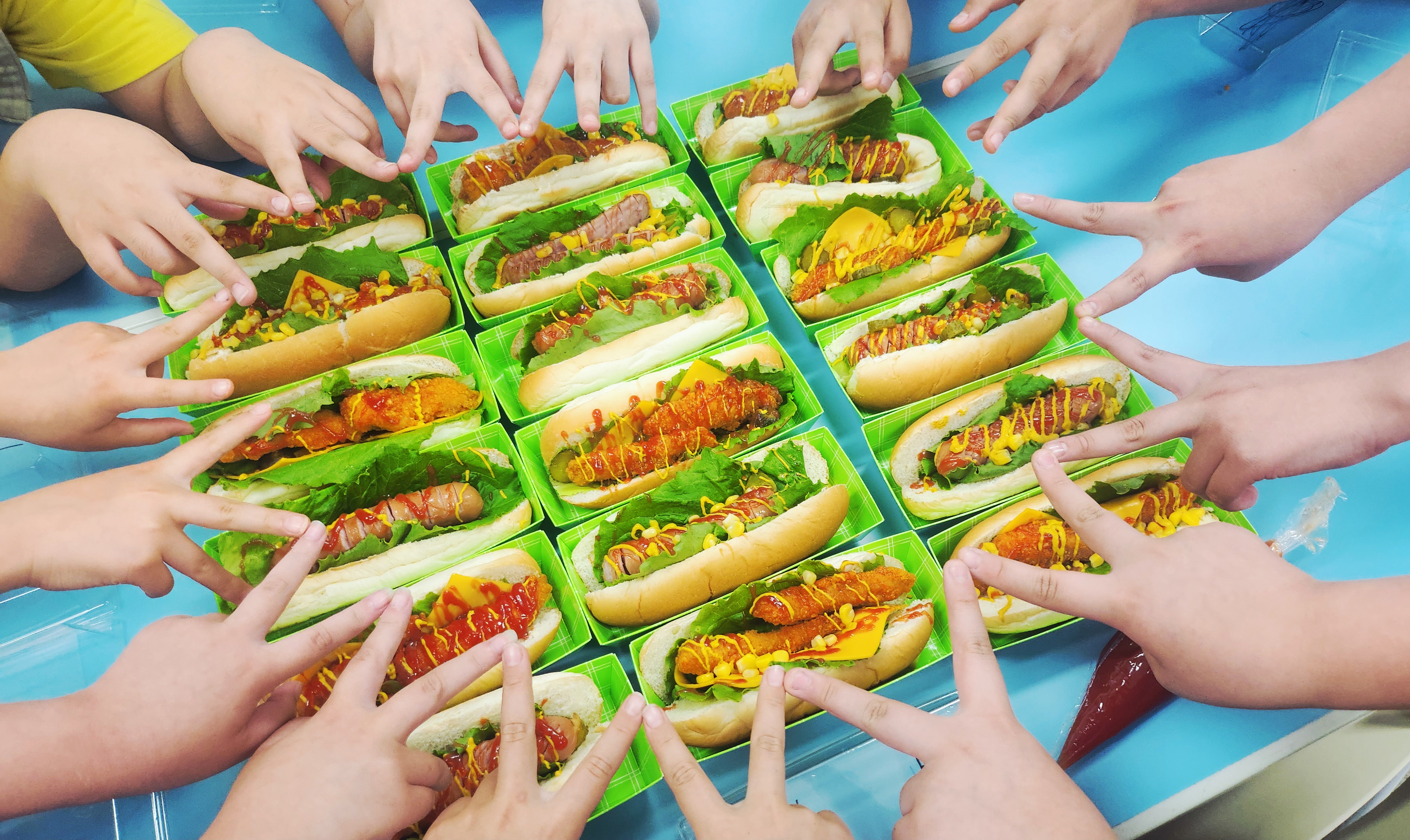 핫도그는 원래 미국에서 시작된 대표 길거리 음식인데요, 다양한 재료를 넣어 개성 있게 즐길 수 있어서 아동요리 수업에도 제격이에요. 이번에는 한 끼 식사로도 충분한 ‘프리미엄 핫도그 샌드위치’를 만들어봤어요!