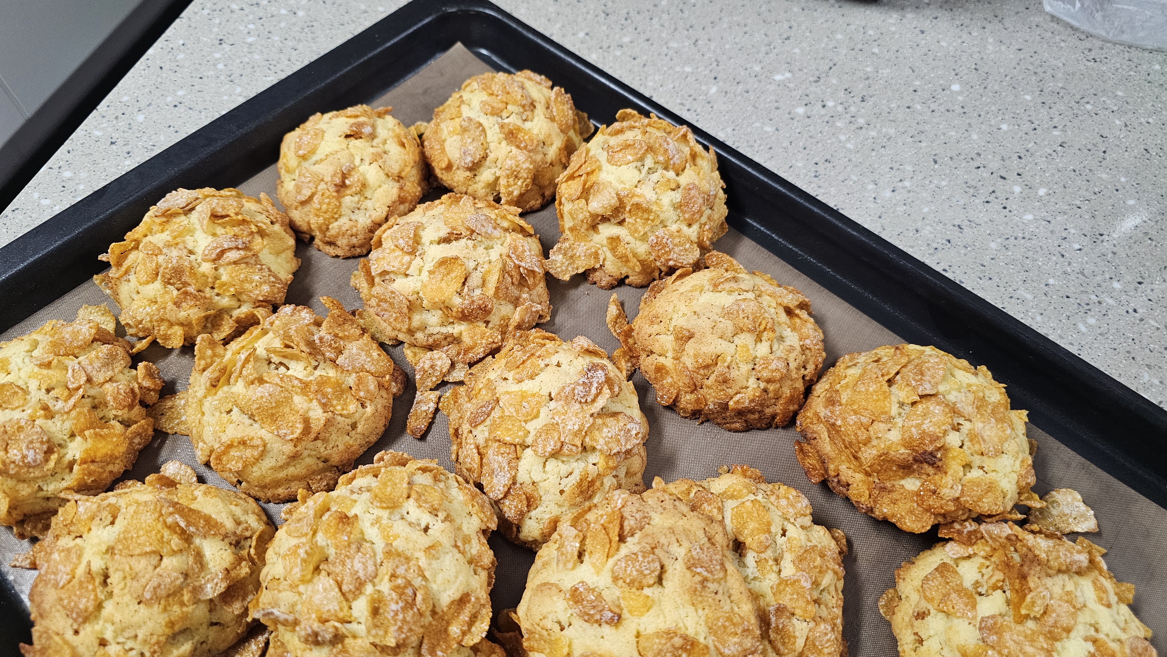 그 다음, 반죽에 오레오를 콕콕 박아주거나, 콘푸레이크를 골고루 묻혀서 모양을 잡았답니다.