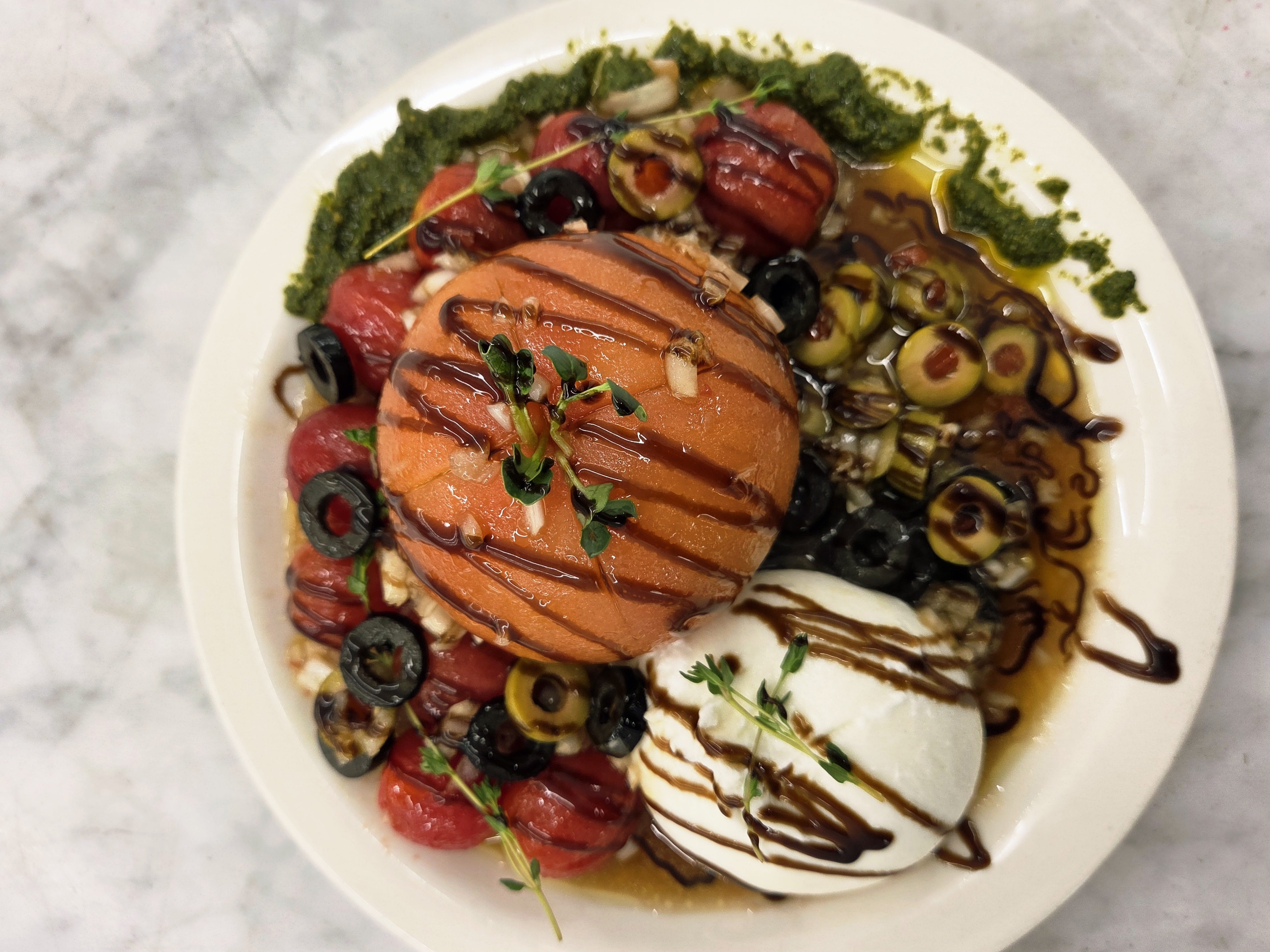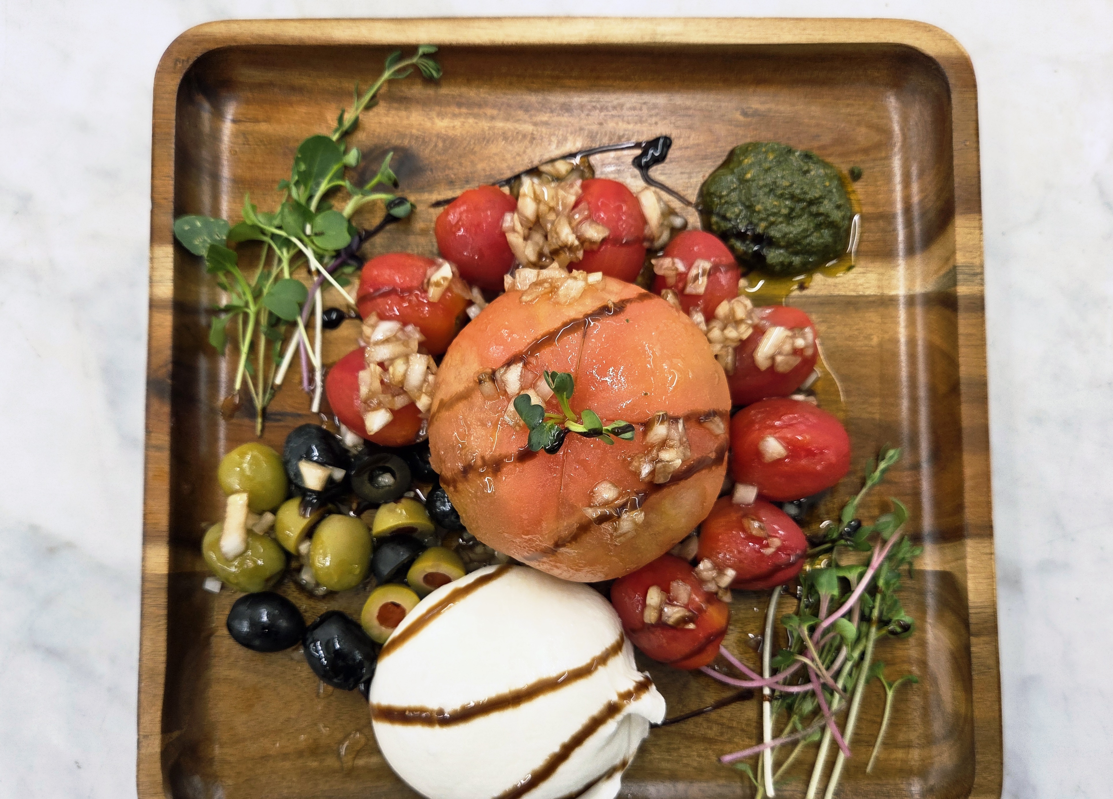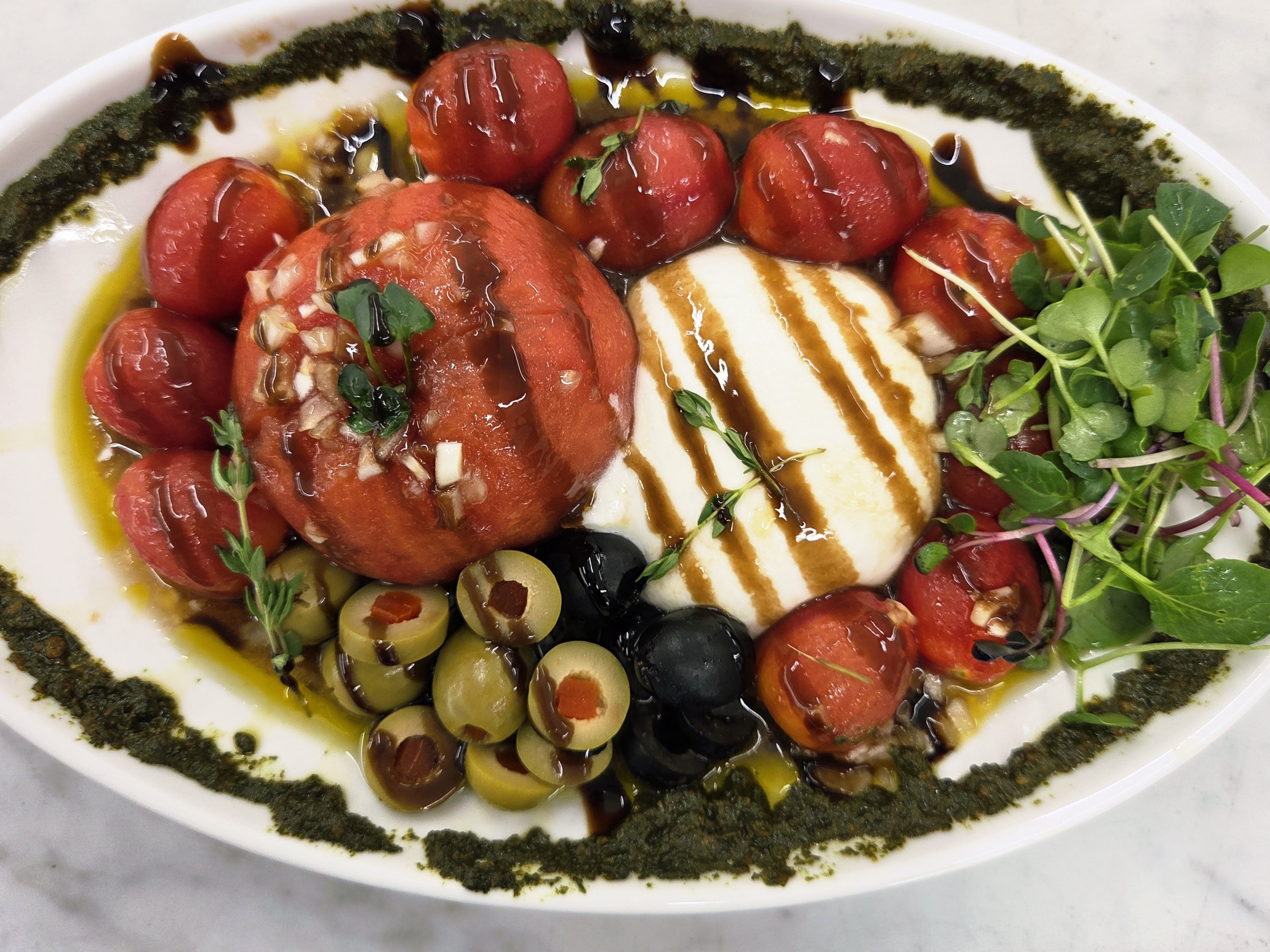 겉은 부드럽고 안은 크리미한 부라타치즈와 새콤달콤한 방울토마토, 통통한 토마토 한 알이 주인공이죠!