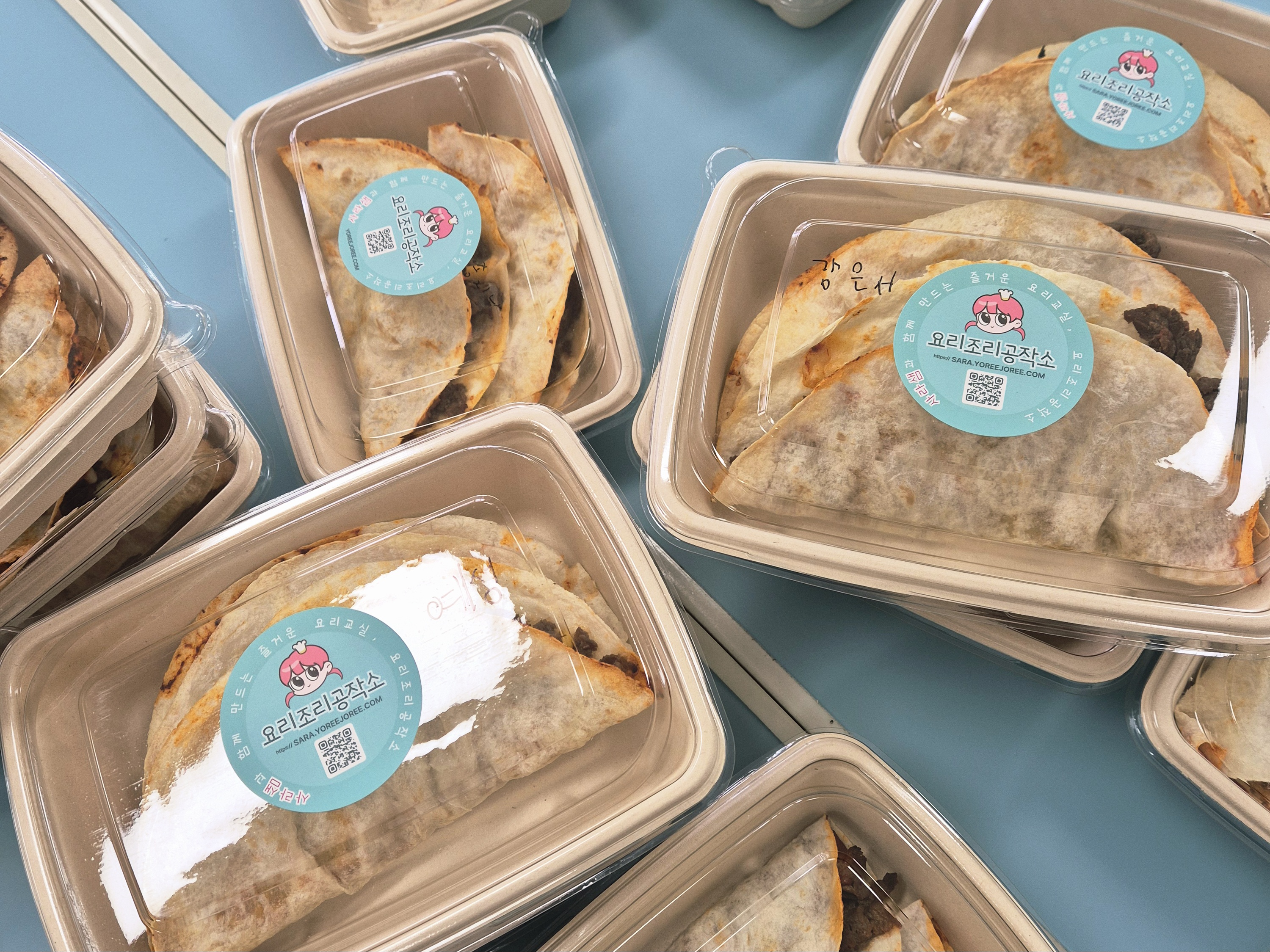 사진 속 포장된 퀘사디아를 보면, 정성껏 만든 결과물이 그대로 담겨 있어요.