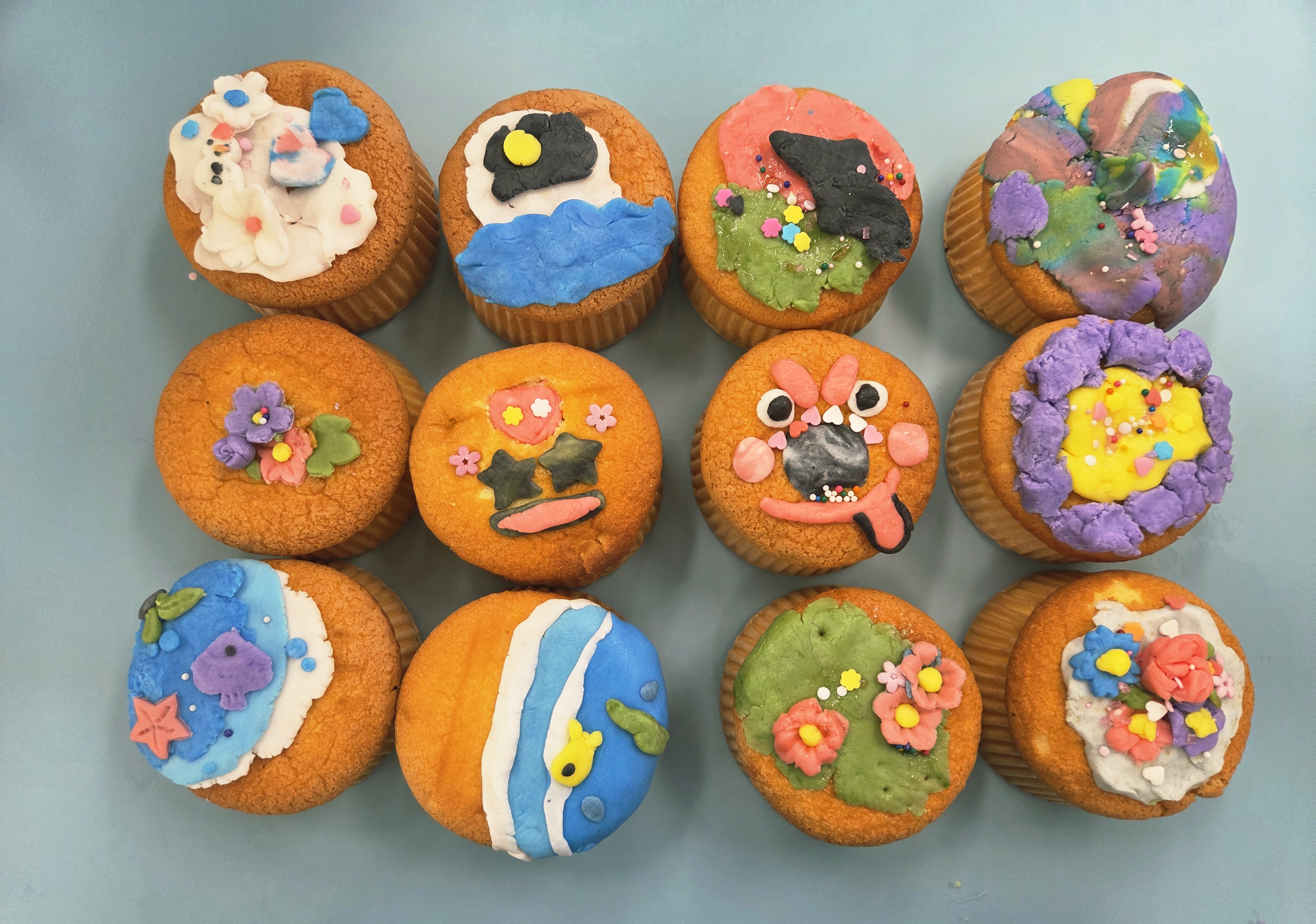 미리 구워진 컵케이크 위는 저마다의 개성을 뽐내는 캔버스가 되었습니다.