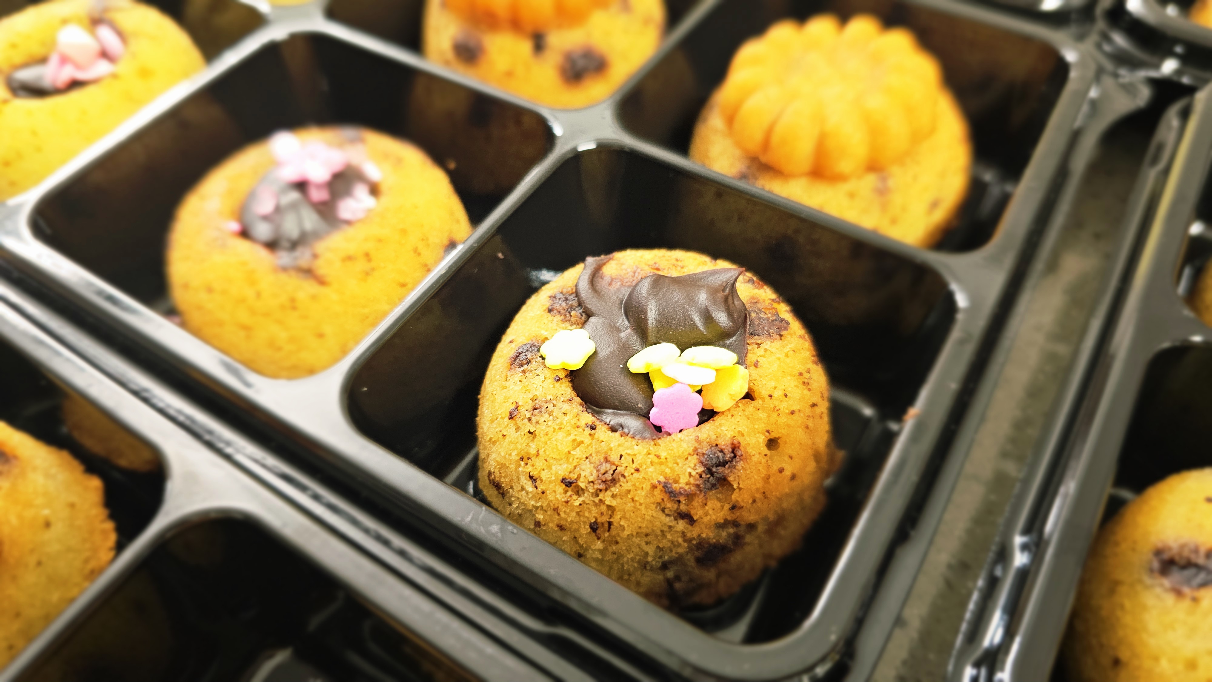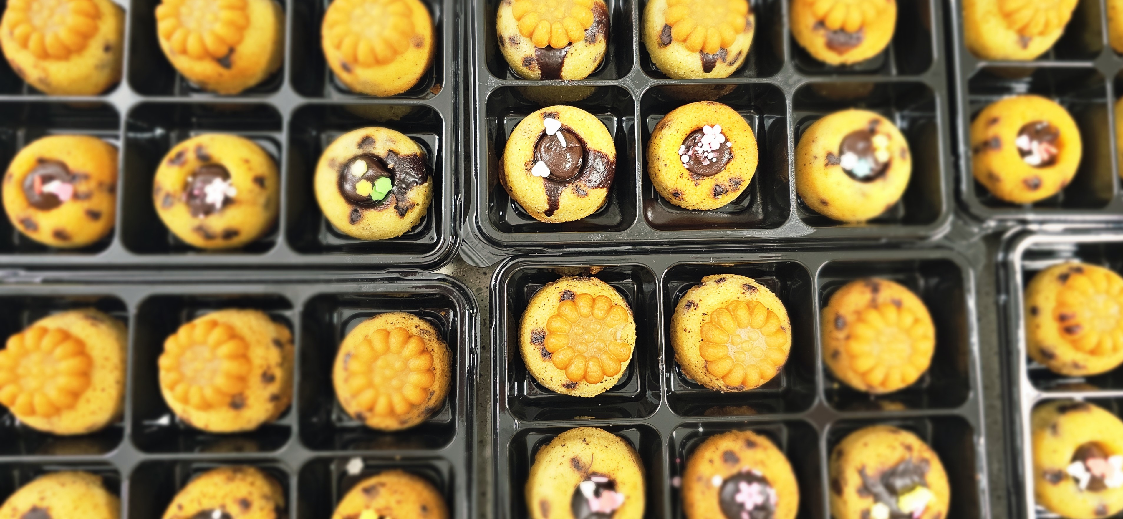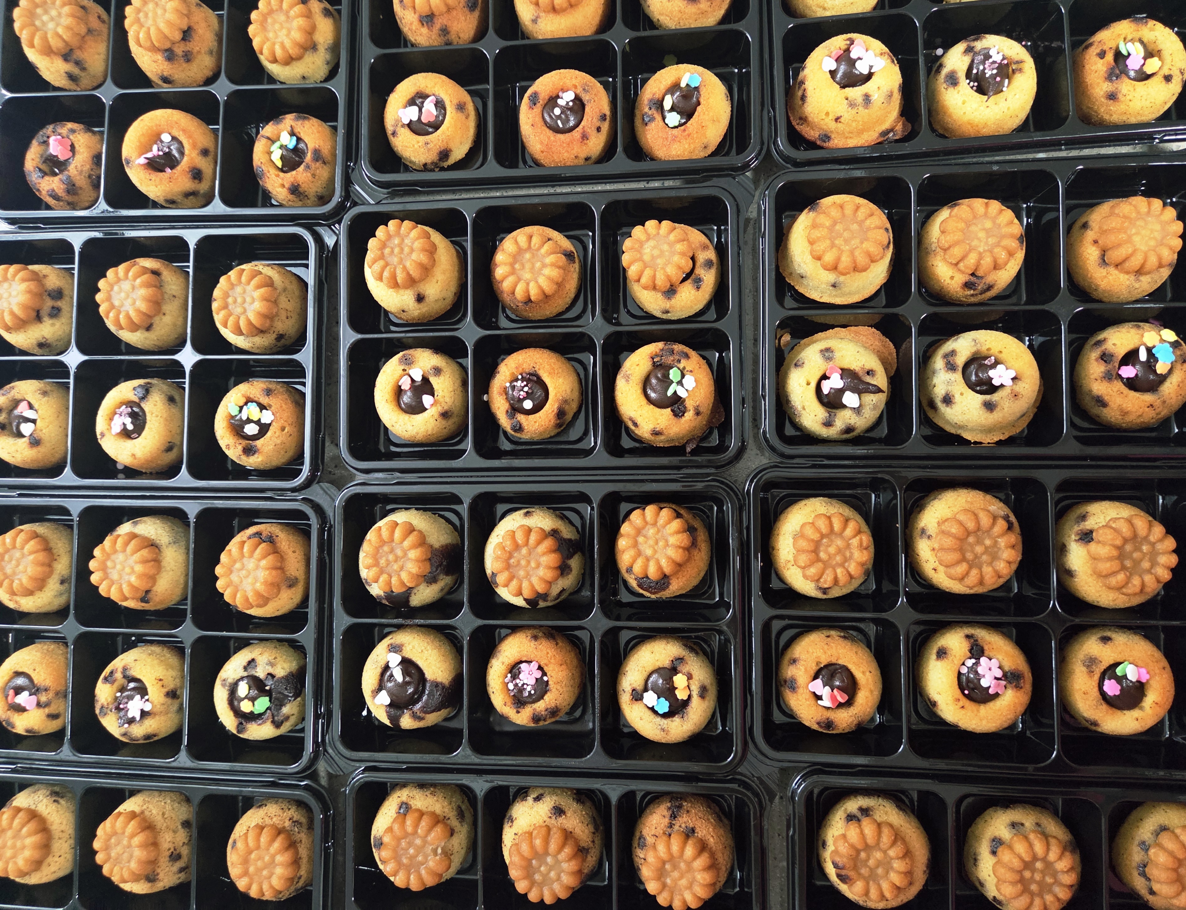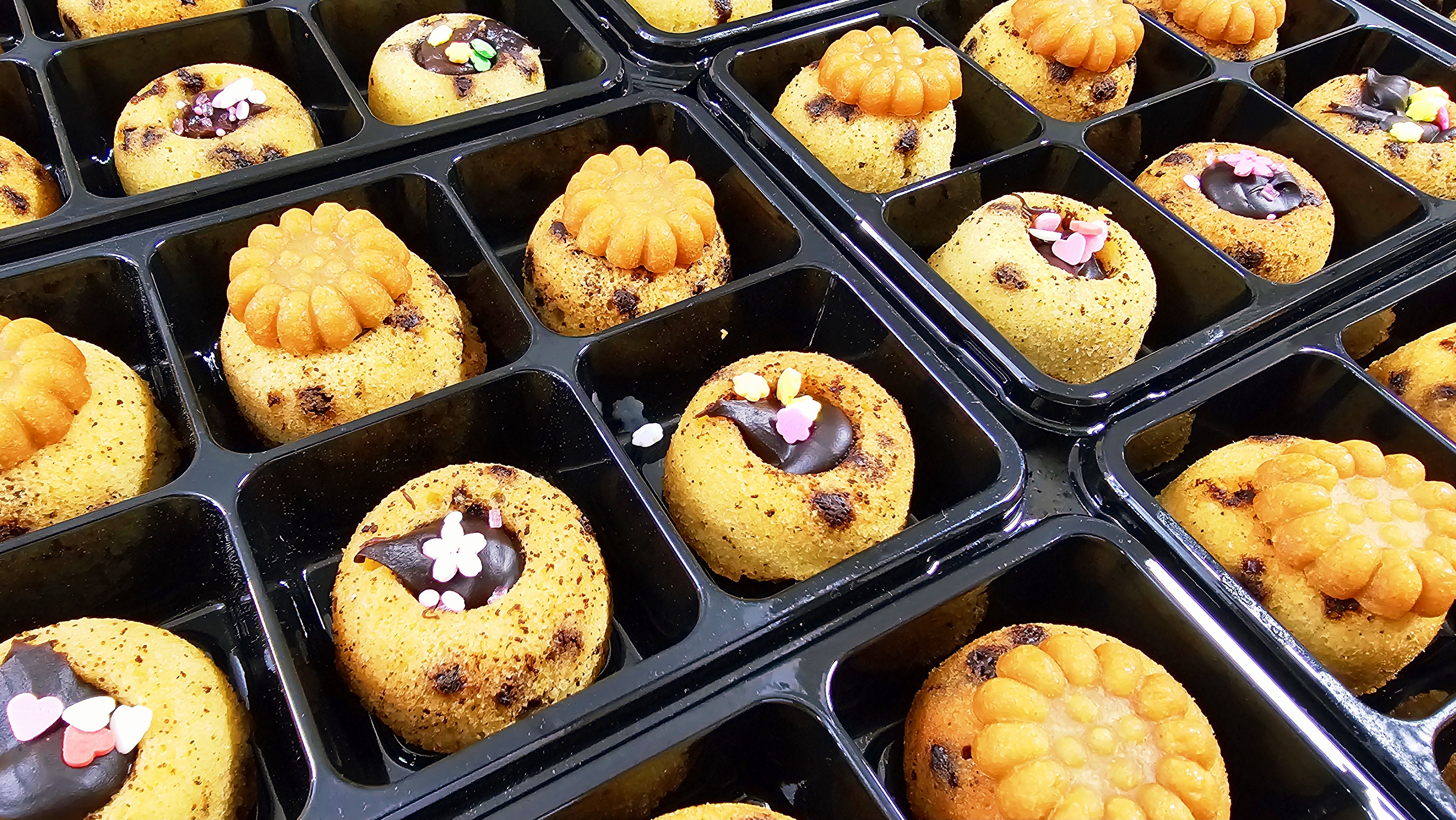 작은 원형 틀에 구워내고 가운데는 동그란 구멍을 남겨 초콜릿 가나슈를 채워 넣는데, 보기에도 예쁘고 한 입 베어 물면 고소한 버터 풍미와 달콤한 초콜릿이 어우러져 남녀노소 모두 좋아합니다. 이번 수업은 <의정부 호암초와 양주 회천초>에서 아이들과 함께 진행되었습니다.