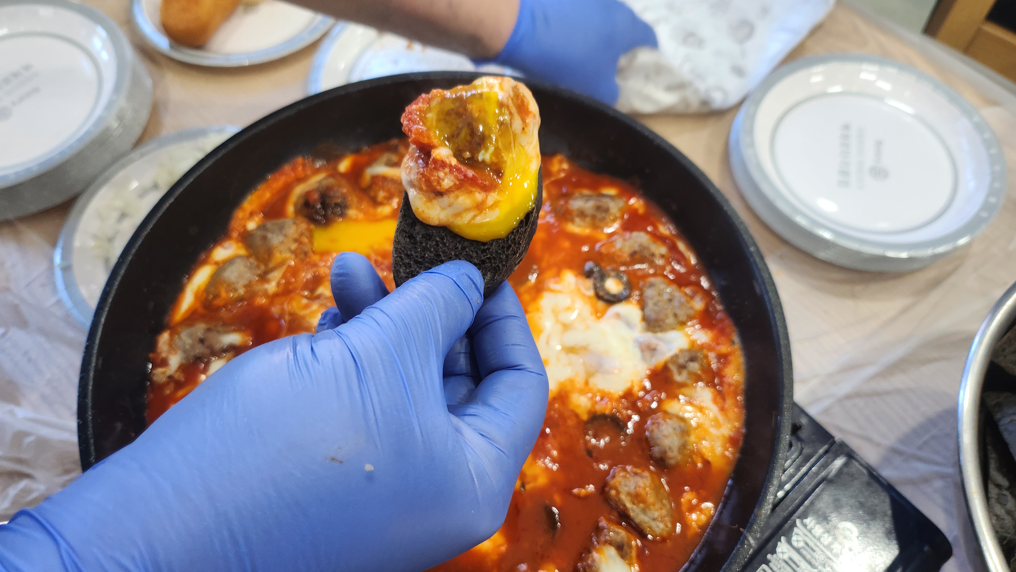 이번 요리 수업에서는 미트볼 타진을 만들어 보았어요. 토마토 소스에 미트볼을 넣고 부드럽게 익힌 후, 올리브와 치즈를 곁들여 완성했답니다. 바삭한 바게트에 얹어 먹으니 환상의 조합이었어요!